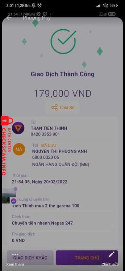 詐欺師警告: NGUYEN THI PHUONG ANH 報告済み: November 16, 2024 詐欺師情報 氏名: NGUYEN THI PHUONG ANH 決済ゲート: MBBank 決済アカウント: 6808032006 カテゴリー: マーケットプレイス詐欺 ソース: Checkscam 証拠ファイル 報告の説明 lừa đảo mua thẻ sau đó đưa thẻ fake đã nạp từ trước chỉ chỉnh sửa thời gian, xong block mình luôn コメント あなたのコメント コメントを追加 まだコメントはありません。この詐欺師についての経験を最初に共有しましょう。