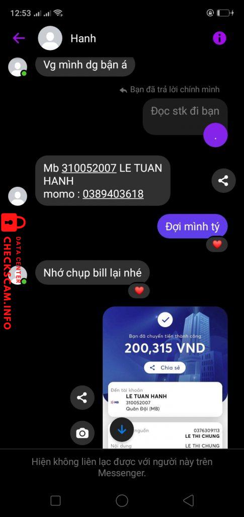 လိမ်လည်သူသတိပေးချက်: LE TUAN HANH