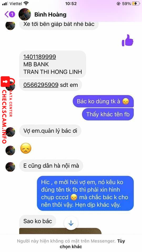 လိမ်လည်သူသတိပေးချက်: TRAN THI HONG LINH