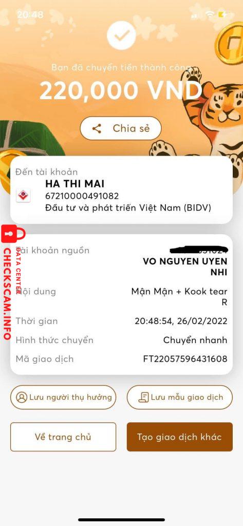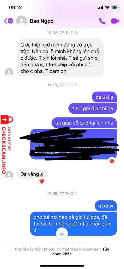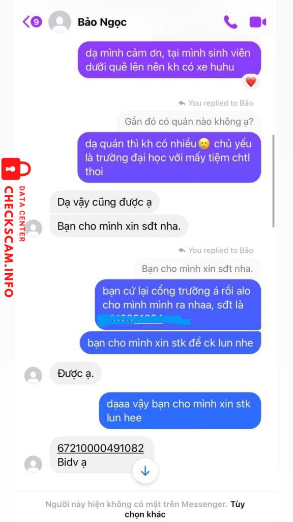 Oplichter Waarschuwing: Ha Thi Mai Gerapporteerd: November 16, 2024 Informatie over oplichter Volledige naam: Ha Thi Mai Betalingsgateway: BIDV Betalingsaccount: 67210000491082 Categorie: Marktplaatsfraudes Bron: Checkscam Bewijsbestanden Rapportbeschrijving Lừa đảo 220k, hứa hẹn giao dịch trực tiếp nhưng lấy cớ gia đình bận việc, hứa sẽ ship + freeship các kiểu. Cuối cùng nhây ship và block. Reacties Uw reactie Reactie toevoegen Nog geen reacties. Wees de eerste die een ervaring deelt met deze oplichter.