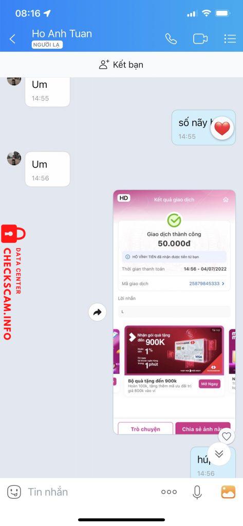Oplichter Waarschuwing: Hồ Anh Tuấn