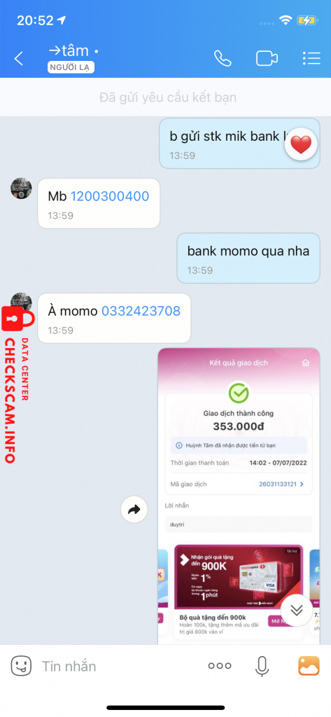Oplichter Waarschuwing: Huynh Nguyen Thanh Tam