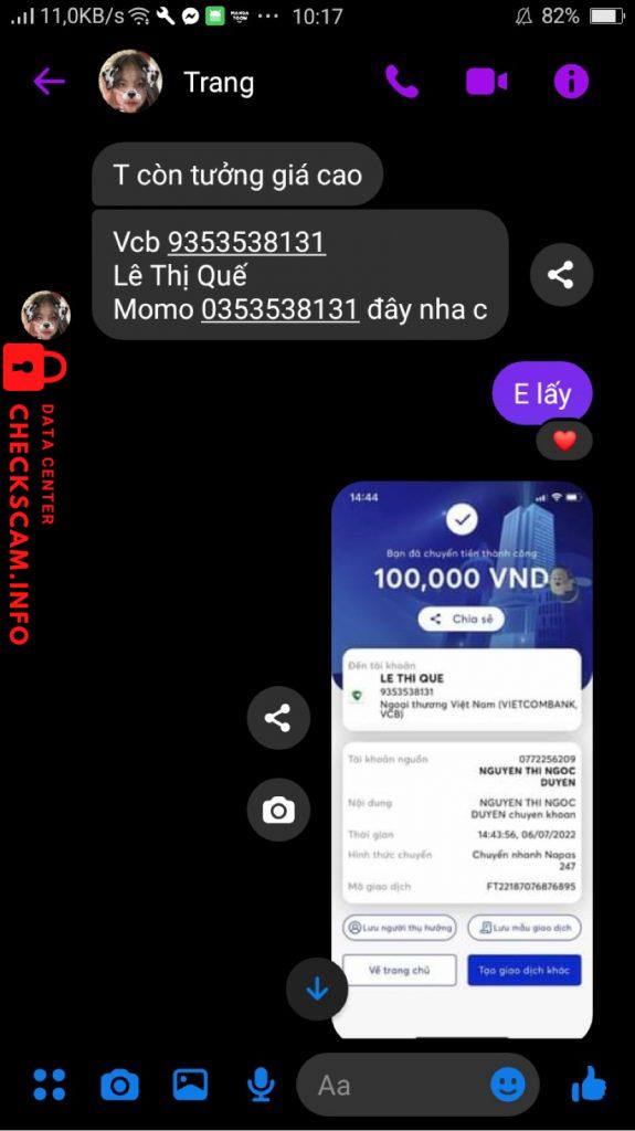 Oplichter Waarschuwing: Lê Thị Quế