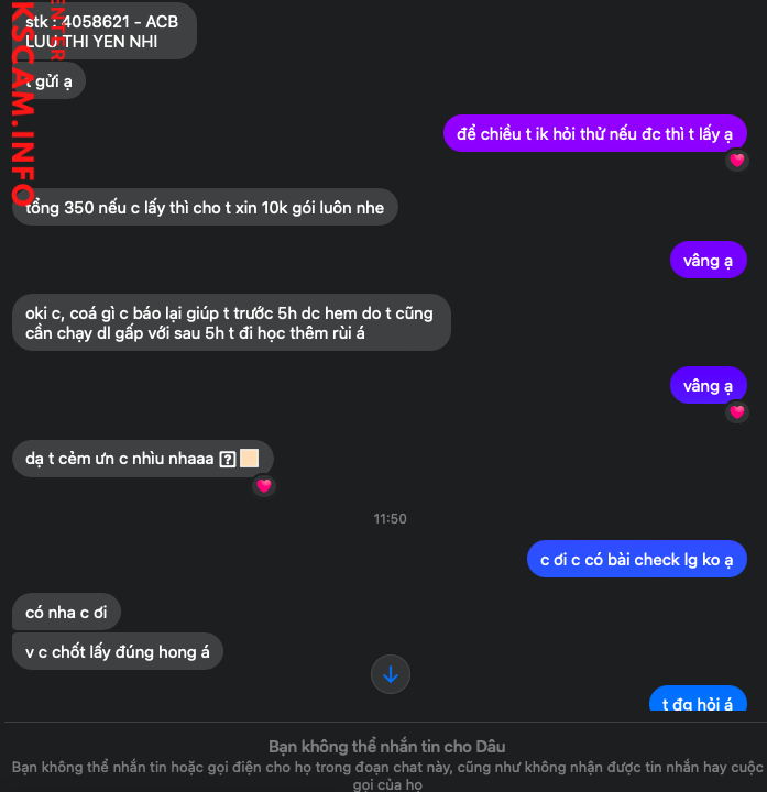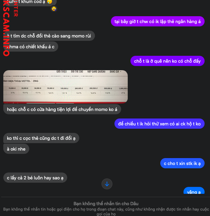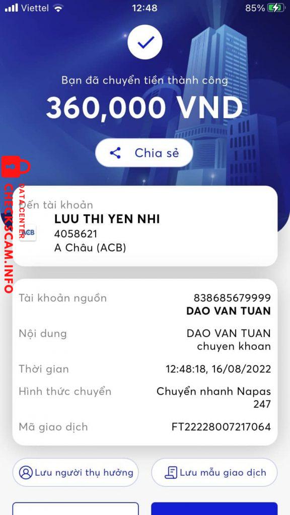 Oplichter Waarschuwing: LUU THI YEN NHI Gerapporteerd: November 16, 2024 Informatie over oplichter Volledige naam: LUU THI YEN NHI Betalingsgateway: ACB Betalingsaccount: 4058621 Categorie: Marktplaatsfraudes Bron: Checkscam Bewijsbestanden Rapportbeschrijving Bạn này lừa t 360k và lấy bài check lg của một bạn khác Reacties Uw reactie Reactie toevoegen Nog geen reacties. Wees de eerste die een ervaring deelt met deze oplichter.