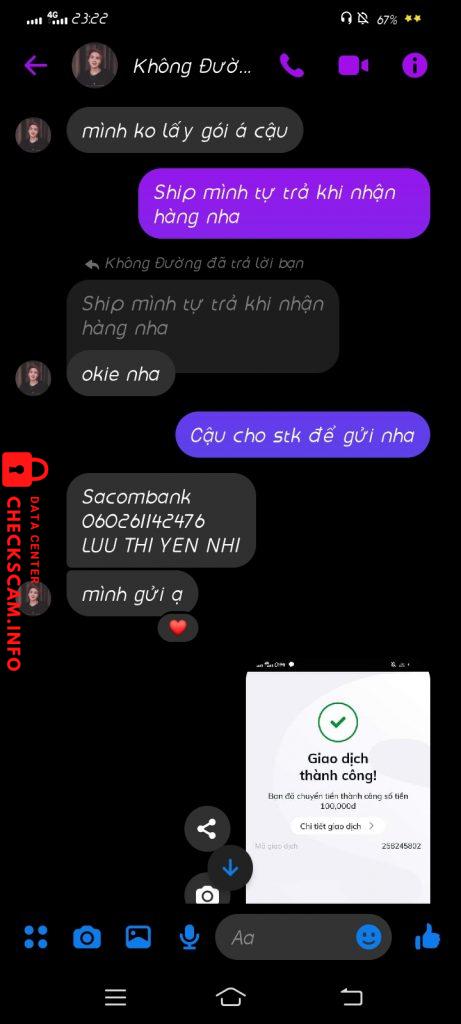Oplichter Waarschuwing: LƯU THỊ YẾN NHI