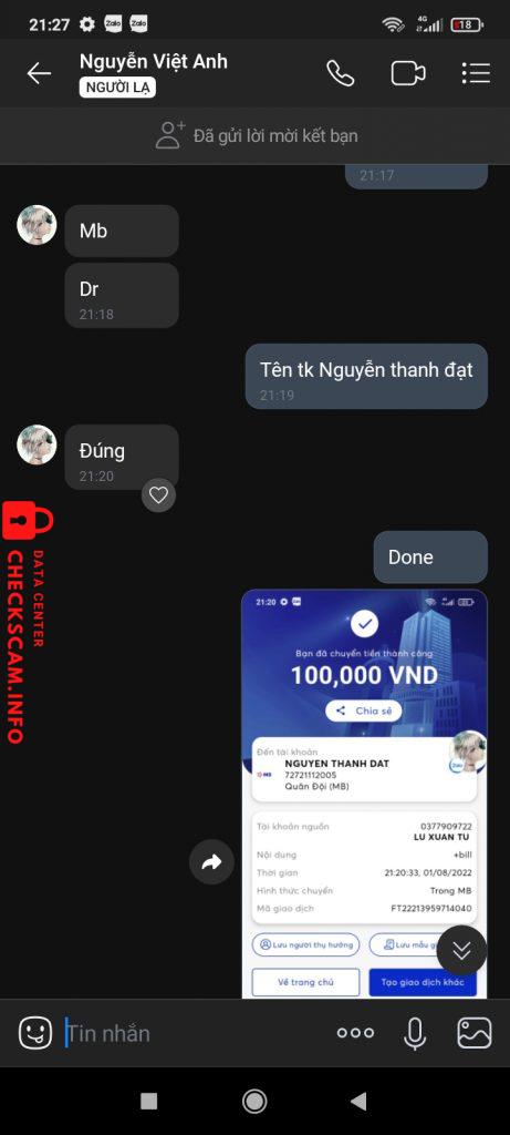 Oplichter Waarschuwing: NGUYEN THANH DAT