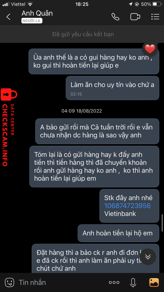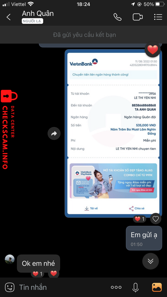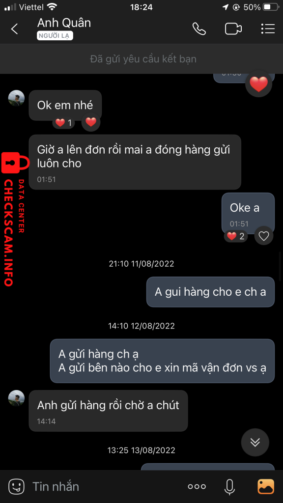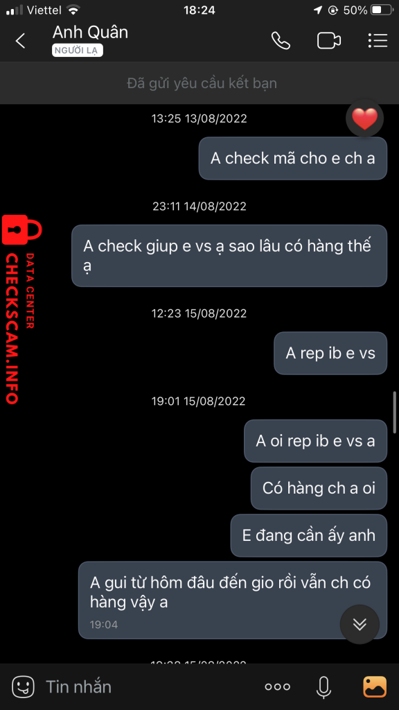 Alerta de golpista: TẠ ANH QUÂN Denunciado: November 16, 2024 Informações do golpista Nome completo: TẠ ANH QUÂN Portal de pagamento: Mb Conta de pagamento: 8838668868868 Categoria: Golpes de mercado online Fonte: Checkscam Arquivos de evidência Descrição do relatório Lừa tiền Comentários Seu comentário Adicionar comentário Ainda não há comentários. Seja o primeiro a compartilhar sua experiência com este golpista.