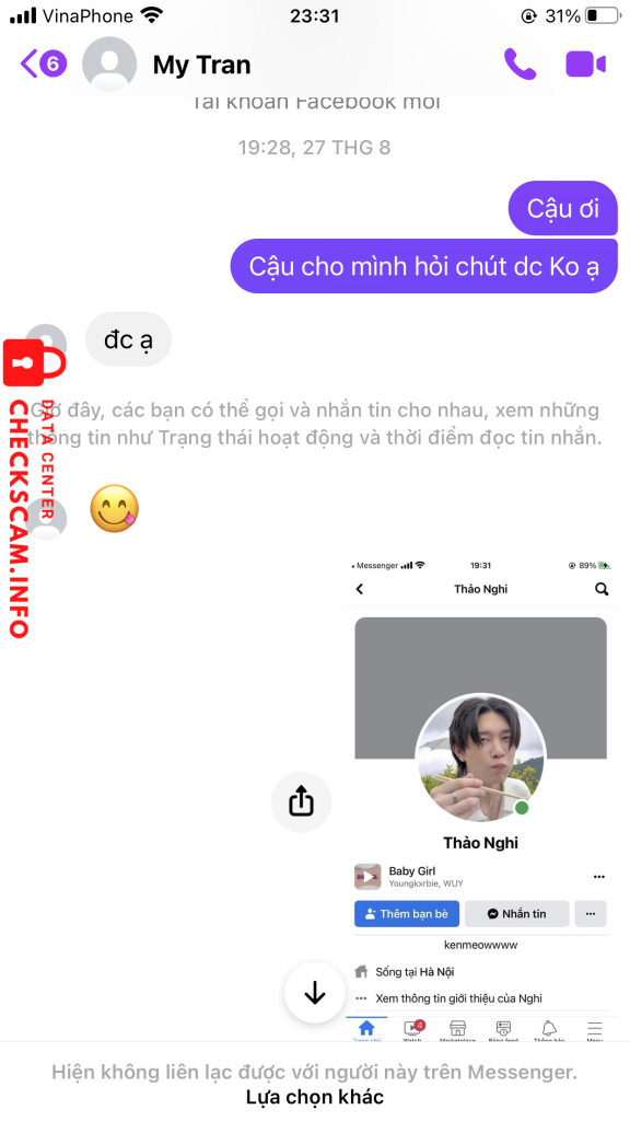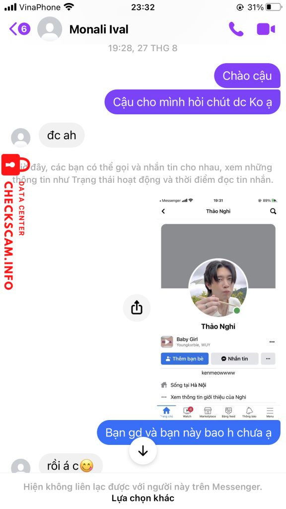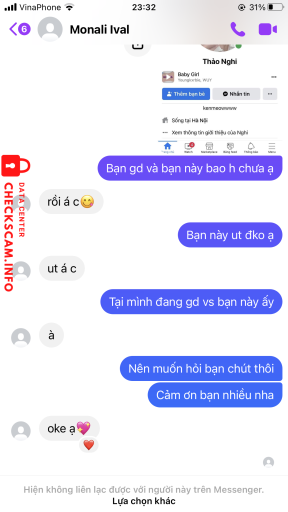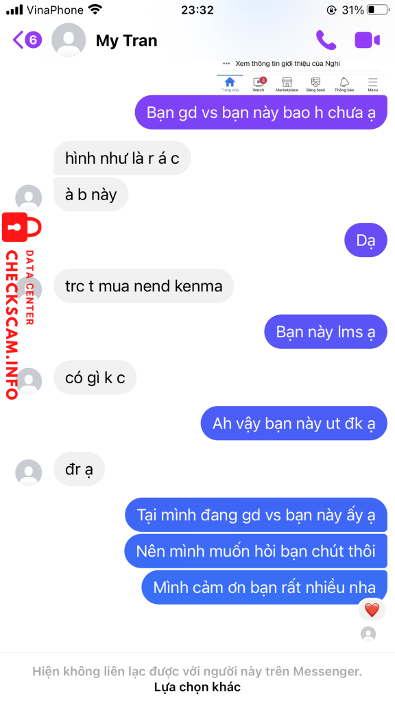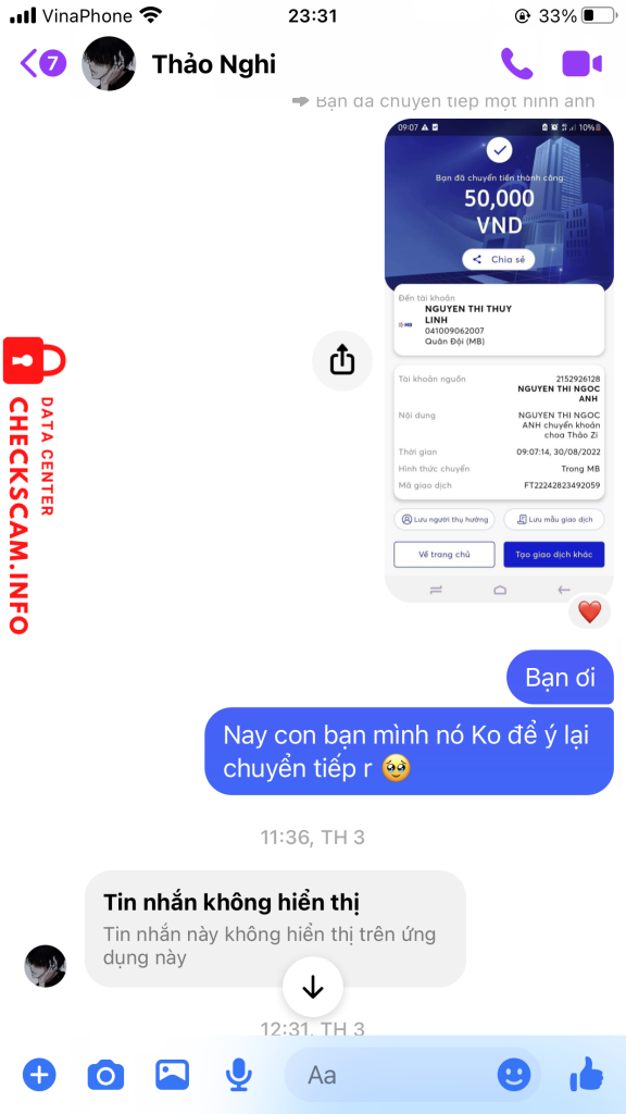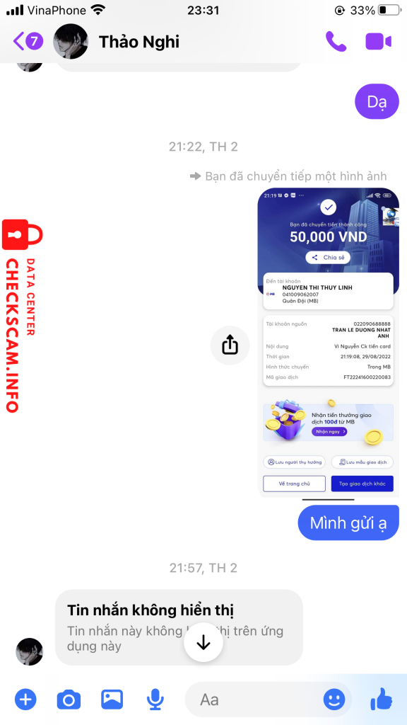 Alerta de golpista: Thảo Nghi Denunciado: November 16, 2024 Informações do golpista Nome completo: Thảo Nghi Portal de pagamento: Momo Conta de pagamento: 0367011541 Categoria: Golpes de mercado online Fonte: Checkscam Arquivos de evidência Descrição do relatório Scam tiền Comentários Seu comentário Adicionar comentário Ainda não há comentários. Seja o primeiro a compartilhar sua experiência com este golpista.