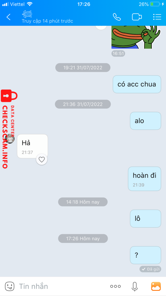scam acc game bank xong không ném acc, nhắn tin kêu nó hoàn thì nó không rep ae gặp thằng như này né nha đỡ bị scam