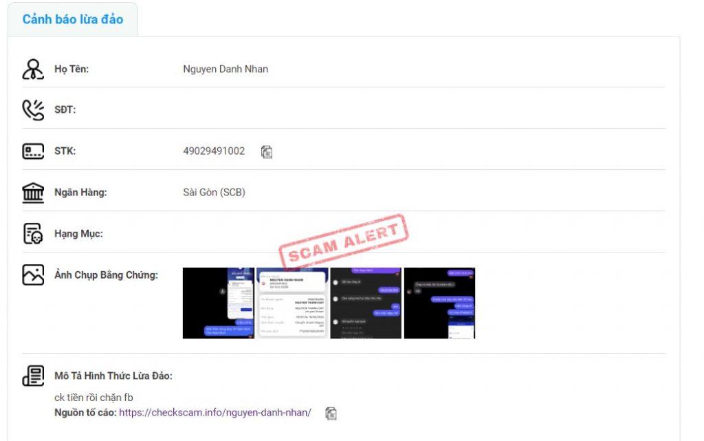 Предупреждение о мошеннике: Nguyen Danh Nhan