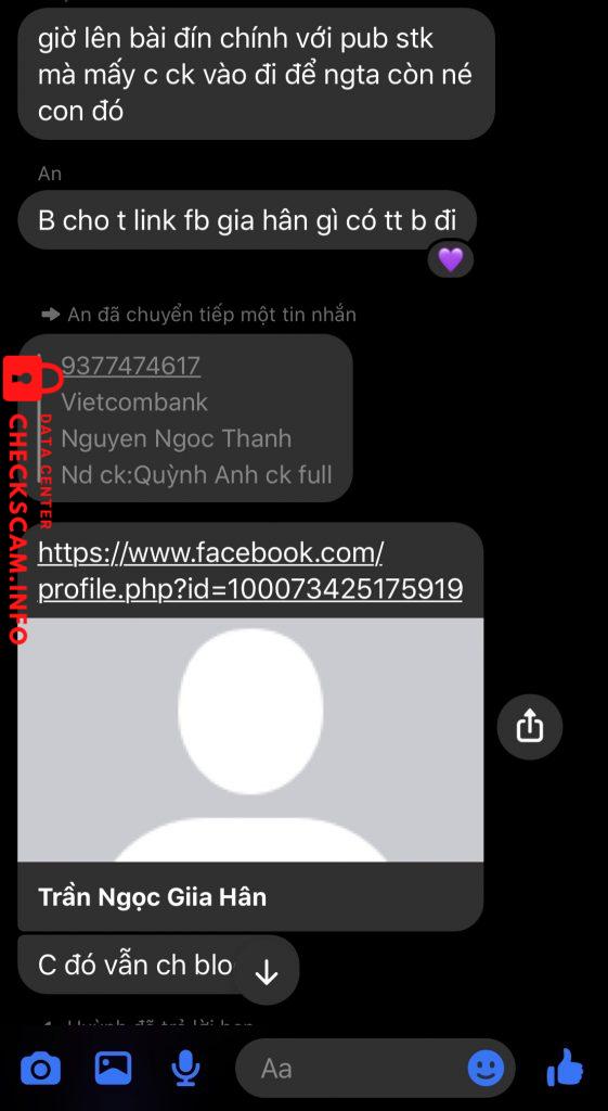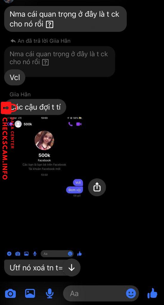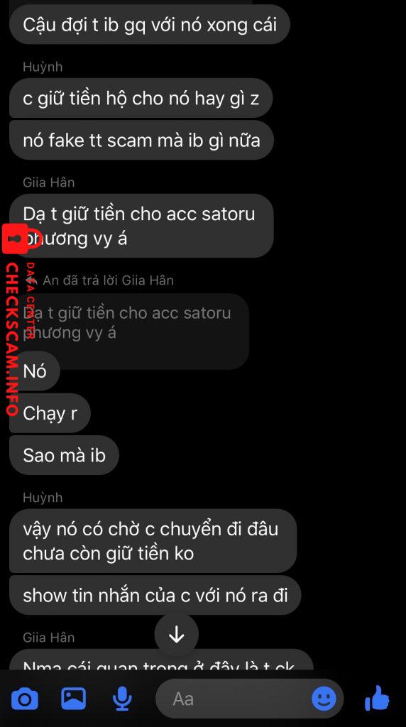 Bạn Satoru Phương Vy (tên fb: Hân) này nhờ t và bạn A chuyển khoản hộ để chạy deadline, thông tin đưa t là lấy của người khác (thông tin bạn này nhắn với seller cũng hoàn toàn fake). Nói với t giữ tài khoản của bạn khác và bạn đó lấy đi scam. Mọi thứ cũng tự biên tự diễn kêu đứa nhờ giữ tiền hộ vào tài khoản phá để làm bọn t rối lên. Kêu chụp bill giữ hộ thì kêu mất. Vì thấy tụi t không tin và quyết làm đến cùng nên rf trả lại. Hiện tại t cũng block bạn này và up lên để mn né, chứ không giống 2 đứa t ko kiếm được nó chắc cũng đi mất 500k.