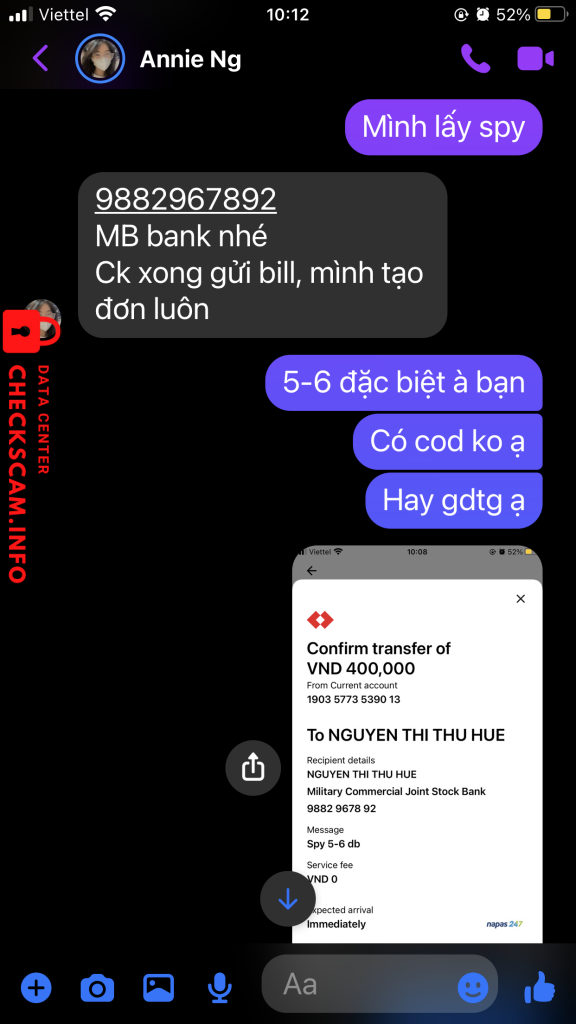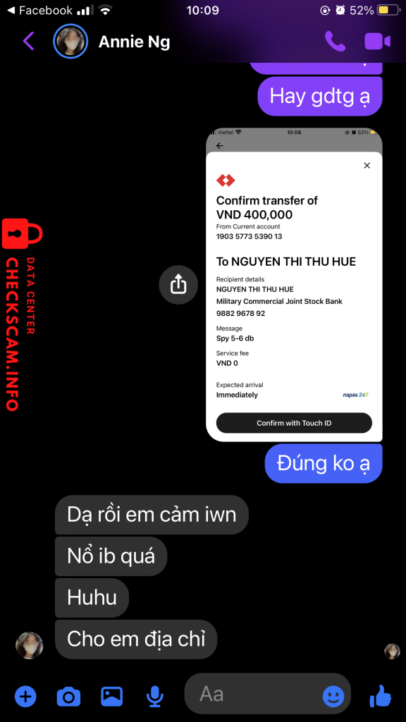 Предупреждение о мошеннике: Nguyễn Thị Thu Huế
