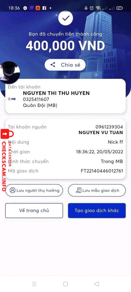Предупреждение о мошеннике: Nguyen Thi Thu Huyen