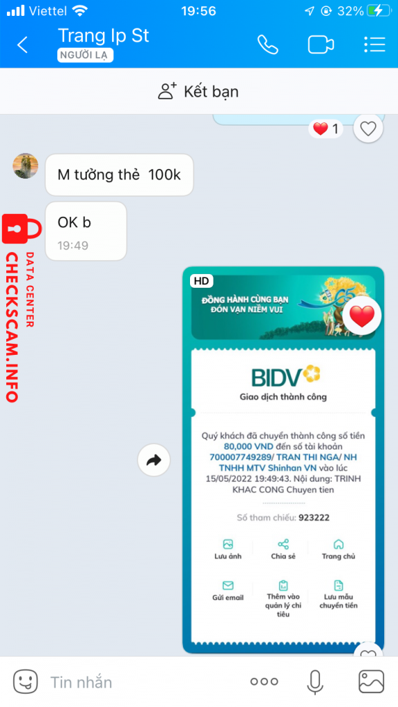 Предупреждение о мошеннике: Trần Thị Nga