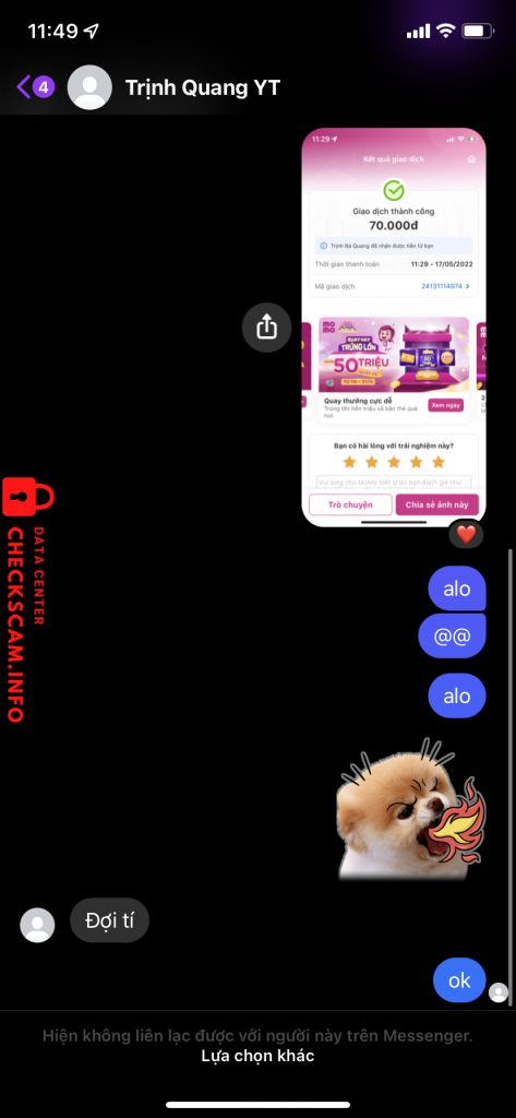 Предупреждение о мошеннике: TRỊNH BÁ QUANG