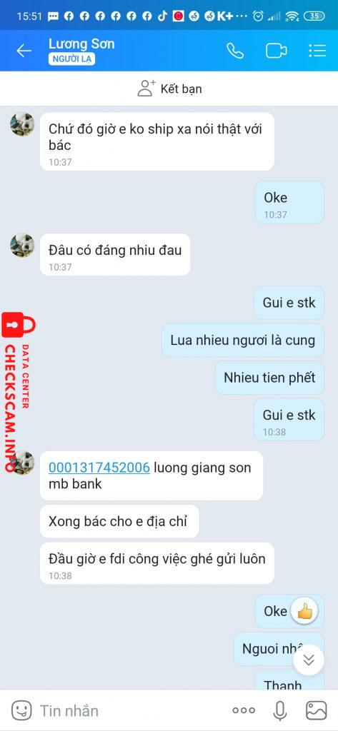 Scammer Alert: Lương giang sơn Reported: November 16, 2024 Scammer Information Full Name: Lương giang sơn Phone Number: 0772112446 Payment Gate: Mb Payment Account: 0001317452006 Category: Marketplace scams Source: Checkscam Evidence Files Report Description Thằng chó nó lừa bán điện thoại 450k nhận tiền xong hủy kết bạn chặn luôn Comments Your comment Add Comment No comments yet. Be the first to share your experience with this scammer.