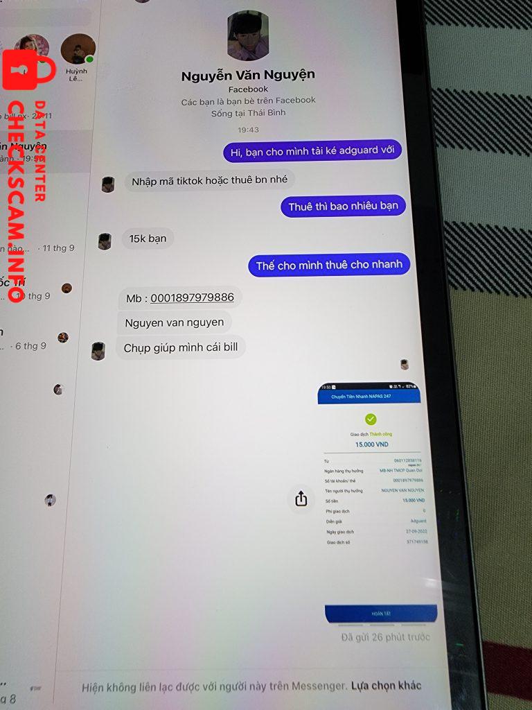 Scammer Alert: Nguyen Van Nguyen Reported: November 16, 2024 Scammer Information Full Name: Nguyen Van Nguyen Payment Gate: Mbbank Payment Account: 0001897979886 Category: Marketplace scams Source: Checkscam Evidence Files Report Description Lừa đảo nạp tiền để share dùng chung ứng dụng trên IOS Comments Your comment Add Comment No comments yet. Be the first to share your experience with this scammer.
