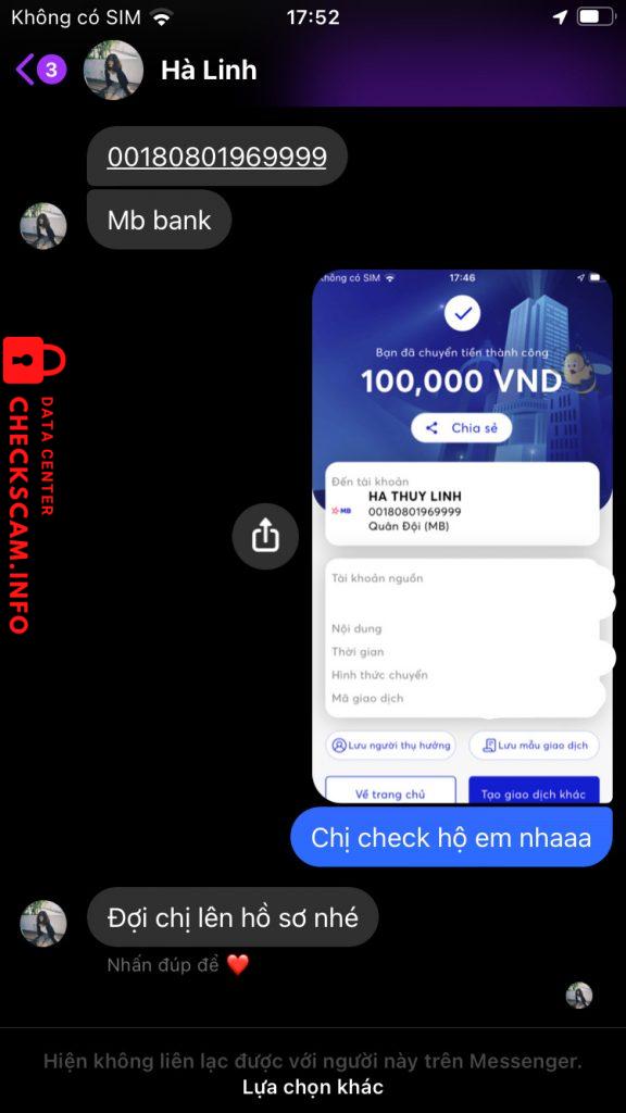 Scammer Alert: NGUYEN HA LINH Reported: November 16, 2024 Scammer Information Full Name: NGUYEN HA LINH Payment Gate: MB Bank Payment Account: 00180801969999 Category: Marketplace scams Source: Checkscam Evidence Files Report Description Lừa đảo cho vay tiền Comments Your comment Add Comment No comments yet. Be the first to share your experience with this scammer.