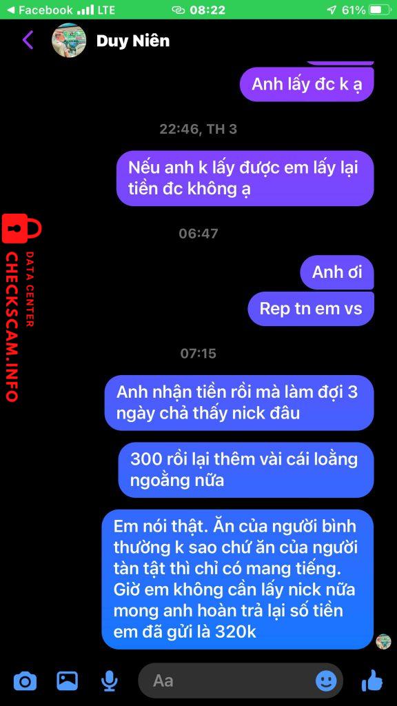 Scammer Alert: phạm duy niên Reported: November 16, 2024 Scammer Information Full Name: phạm duy niên Payment Gate: ocb Payment Account: 016900005394008 Category: Marketplace scams Source: Checkscam Evidence Files Report Description lừa đảo Comments Your comment Add Comment No comments yet. Be the first to share your experience with this scammer.