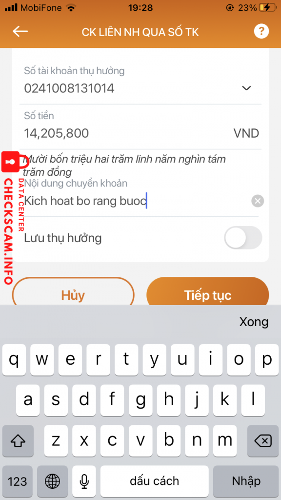 Scammer Alert: Nguyen quang nhat Reported: November 16, 2024 Scammer Information Full Name: Nguyen quang nhat Payment Gate: Ab bank Payment Account: 0241008131014 Category: Marketplace scams Source: Checkscam Evidence Files Report Description Qua cong việc rồi lừa đảo Comments Your comment Add Comment No comments yet. Be the first to share your experience with this scammer.