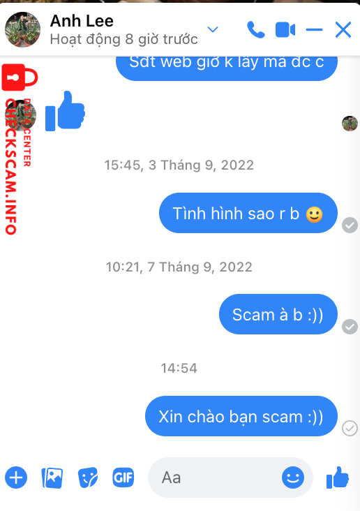 Scammer Alert: LE DUC ANH Reported: November 16, 2024 Scammer Information Full Name: LE DUC ANH Phone Number: 0962428200 Payment Gate: Sacombank Payment Account: 030082166838 Category: Marketplace scams Source: Checkscam Evidence Files Report Description Giả vờ làm các dịch vụ liên quan đến mạng xã hội, thương mại điện tử Trung Quốc. Bán tài khoản tiktok trung quốc, bán code sim trung quốc….. Comments Your comment Add Comment No comments yet. Be the first to share your experience with this scammer.