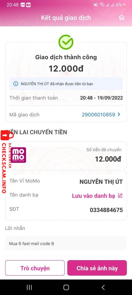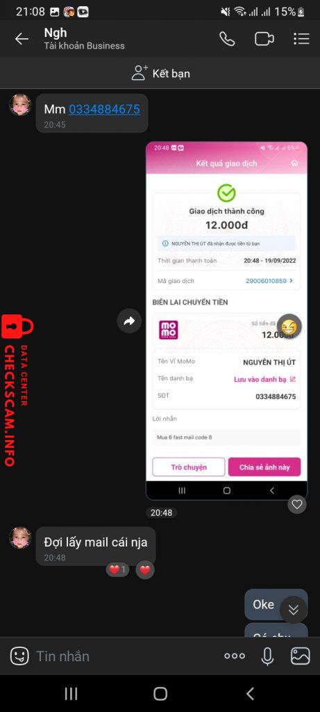 Scammer Alert: Nguyễn Thị Út Reported: November 16, 2024 Scammer Information Full Name: Nguyễn Thị Út Phone Number: 0334884675 Payment Gate: MOMO Payment Account: 0334884675 Category: Marketplace scams Source: Checkscam Evidence Files Report Description Tui mua mail nó cái nó block scam tui luôn r. Mong AD lấy lại Công bằng cho tui ạ. THANK AD RẤT NHIỀU Comments Your comment Add Comment No comments yet. Be the first to share your experience with this scammer.