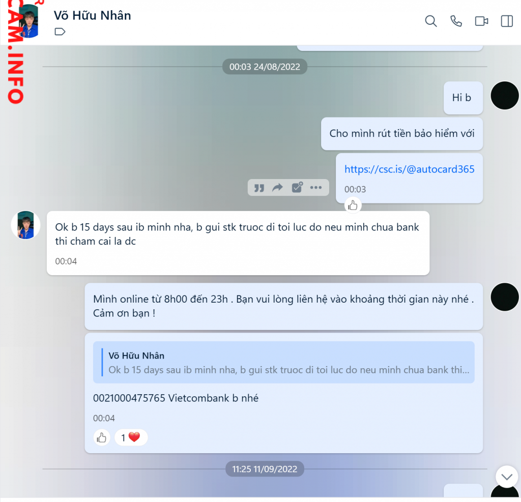 Bạn này có tích xanh facebook , 1m8 follow ,trước mở web https://csc.is để nhận bảo hiểm , mình đóng bảo hiểm 10 triệu , cách đây 1 tháng mình có nhắn muốn rút bảo hiểm thì như bên trên mình có chụp , web kia cũng sập luôn . mình bị lừa đảo 8 triệu vnđ