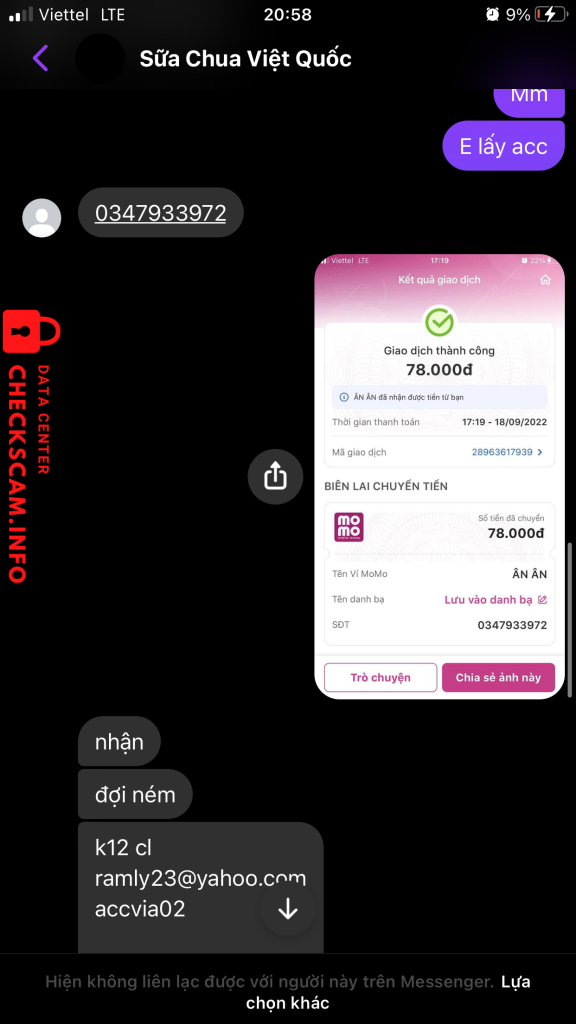 Scammer Alert: Ân ân Reported: November 16, 2024 Scammer Information Full Name: Ân ân Phone Number: 0347933972 Payment Gate: Mb bank Payment Account: 0347933972 Category: Marketplace scams Source: Checkscam Evidence Files Report Description Lừa đảo buôn bán acc ff Comments Your comment Add Comment No comments yet. Be the first to share your experience with this scammer.