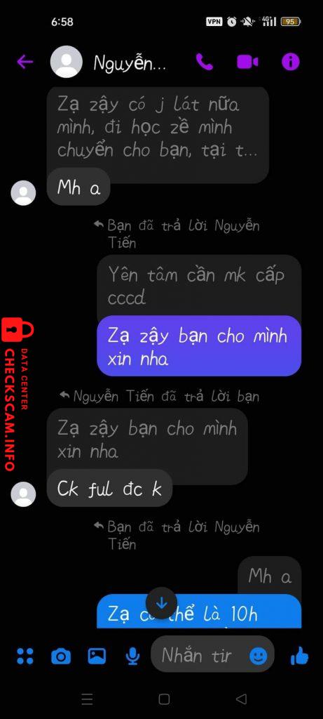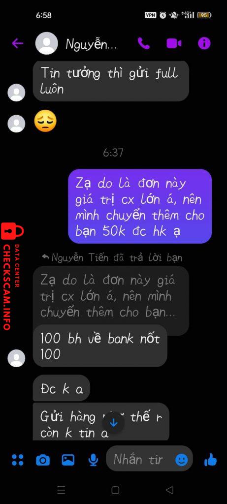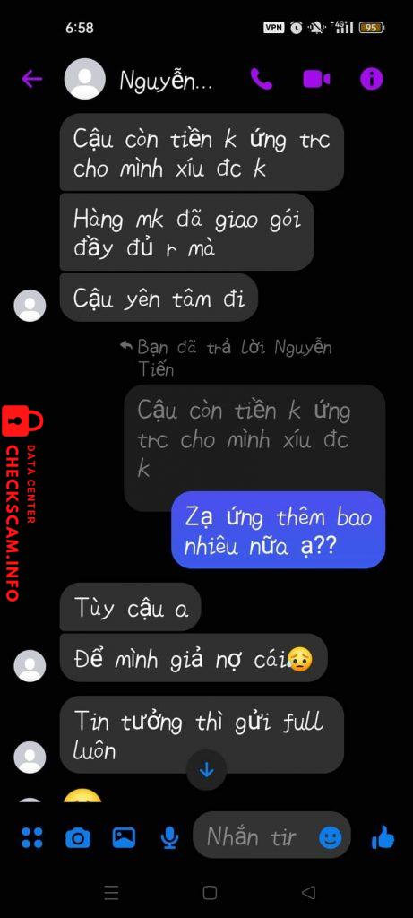 Scammer Alert: Nguyễn Tiến Đạt Reported: November 16, 2024 Scammer Information Full Name: Nguyễn Tiến Đạt Phone Number: 0348960760 Payment Gate: Momo Payment Account: 0348960760 Category: Marketplace scams Source: Checkscam Evidence Files Report Description Horimiya 16 giới hạn Comments Your comment Add Comment No comments yet. Be the first to share your experience with this scammer.