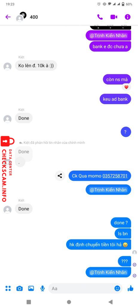 Scammer Alert: 0357258701 Reported: November 16, 2024 Scammer Information Full Name: 0357258701 Phone Number: 0357258701 Payment Gate: Momo Payment Account: 0357258701 Category: Marketplace scams Source: Checkscam Evidence Files Report Description tôi tăng đủ follow cho khách xg chặn hk bank tiền cho tôi Comments Your comment Add Comment No comments yet. Be the first to share your experience with this scammer.