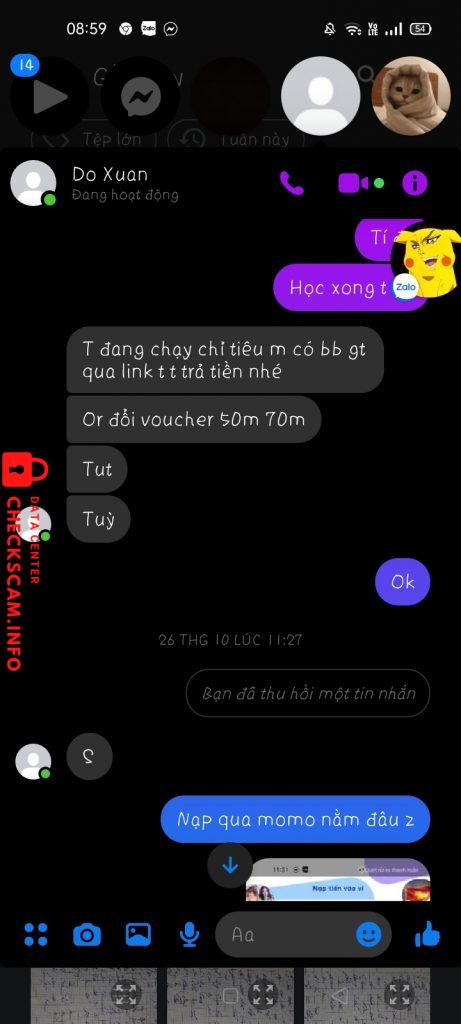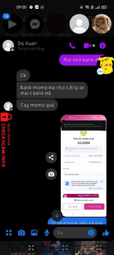 Gạ liên kết ngân hàng mbbank để ăn hoa hồng chia nhau nhưng đến lúc liên kết 2 lần thì bịp không chịu trả tiền (100k) xong rồi nó bảo nhờ đỗi 30k momo sang mbbank xong tôi cũng tin nó và chuyễn cmn 30k momo và cái kết không thể nào thơm hơn là nhắn tin không rep sau một khoảng thời gian thì tôi lướt trên google trick thấy nó bị phốt scam !