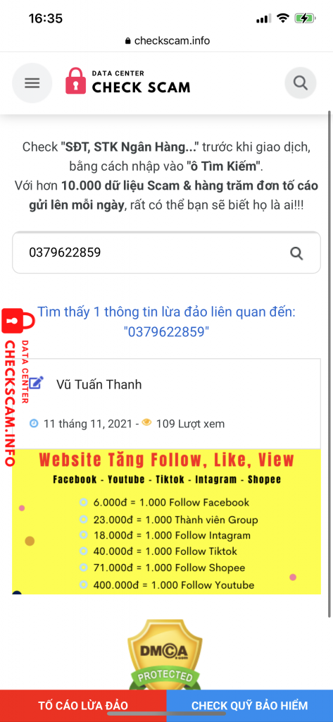Scammer Alert: 0379622859 Reported: November 16, 2024 Scammer Information Full Name: 0379622859 Phone Number: 0379622859 Payment Gate: MBBank Payment Account: 0379622859 Category: Marketplace scams Source: Checkscam Evidence Files Report Description Nó lừa đảo mua follow không giả tiền Comments Your comment Add Comment No comments yet. Be the first to share your experience with this scammer.