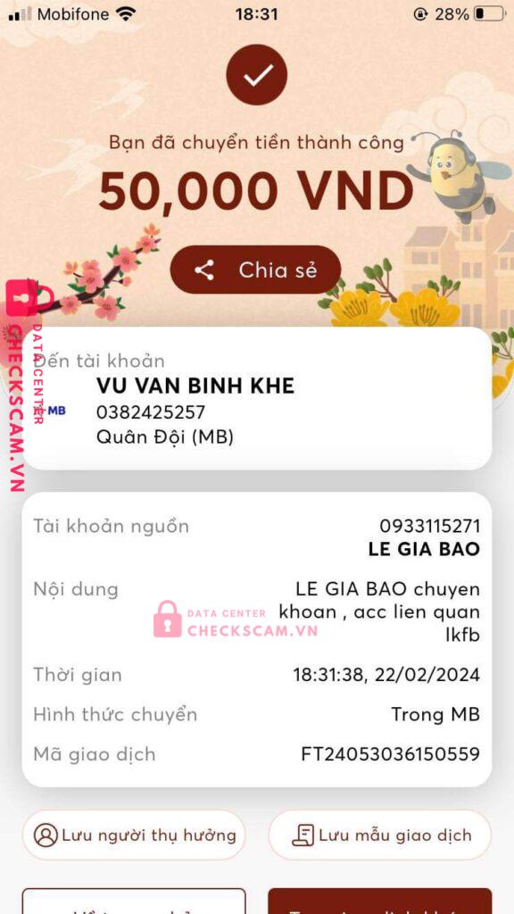 Scammer Alert: 0382425257 Reported: November 16, 2024 Scammer Information Full Name: 0382425257 Payment Gate: MB Bank Payment Account: VUVANBINHKHE. Category: Marketplace scams Source: Checkscam Evidence Files Report Description Thằng này nhận tiền cọc xong xoá acc fb Comments Your comment Add Comment No comments yet. Be the first to share your experience with this scammer.