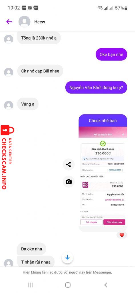 Scammer Alert: NGUYỄN VĂN KHỎI Reported: November 16, 2024 Scammer Information Full Name: NGUYỄN VĂN KHỎI Phone Number: 0385209910 Payment Gate: Momo Payment Account: 0385209910 Category: Marketplace scams Source: Checkscam Evidence Files Report Description Lừa đảo mua card qua fb Comments Your comment Add Comment No comments yet. Be the first to share your experience with this scammer.
