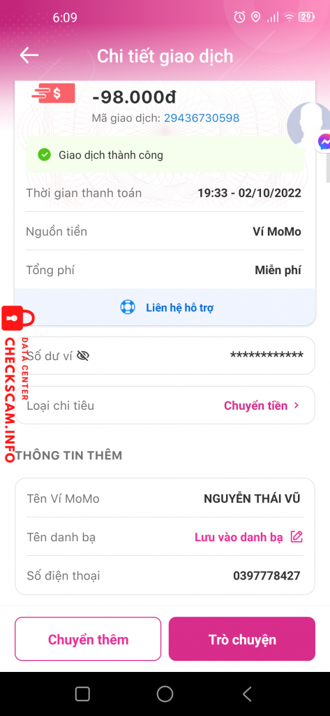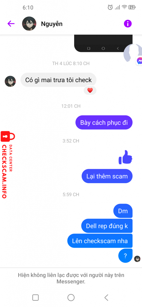 Scammer Alert: Nguyễn Thái Vũ Reported: November 16, 2024 Scammer Information Full Name: Nguyễn Thái Vũ Phone Number: 0397778427 Payment Gate: Momo Payment Account: 0397778427 Category: Marketplace scams Source: Checkscam Evidence Files Report Description Scam vps 4:16 mua sài được 3 ngày rồi ko vô dc nhắn bảo hành nó block luôn Comments Your comment Add Comment No comments yet. Be the first to share your experience with this scammer.