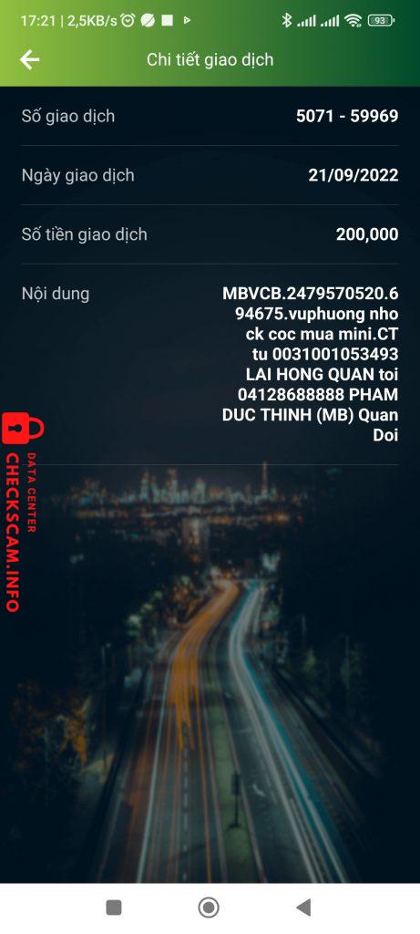 Scammer Alert: Phạm đức thịnh Reported: November 16, 2024 Scammer Information Full Name: Phạm đức thịnh Payment Gate: Mb bank Payment Account: 04128688888 Category: Marketplace scams Source: Checkscam Evidence Files Report Description Nhận cọc mua flycam rồi mất hút Comments Your comment Add Comment No comments yet. Be the first to share your experience with this scammer.