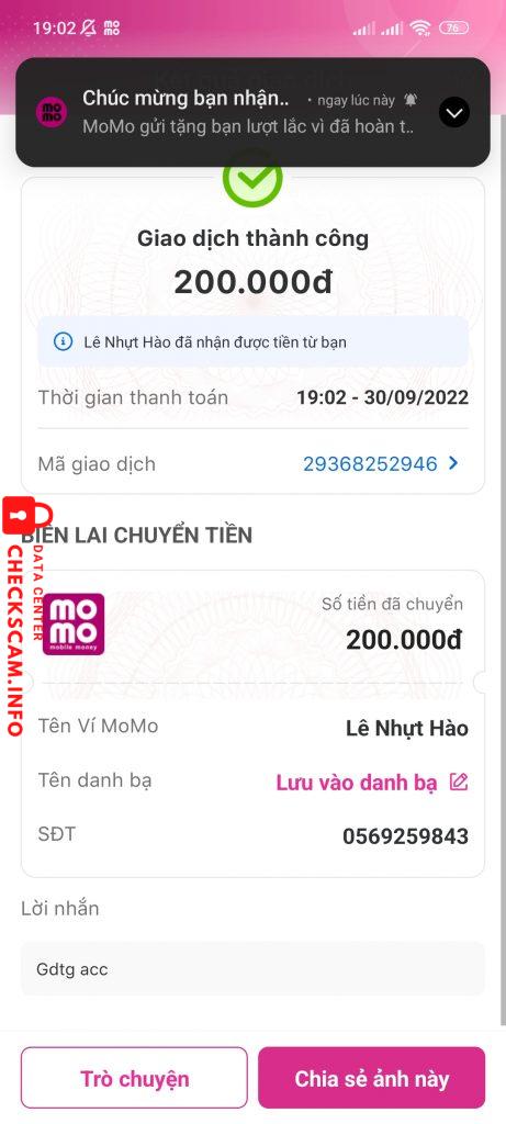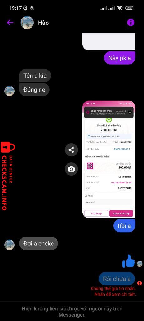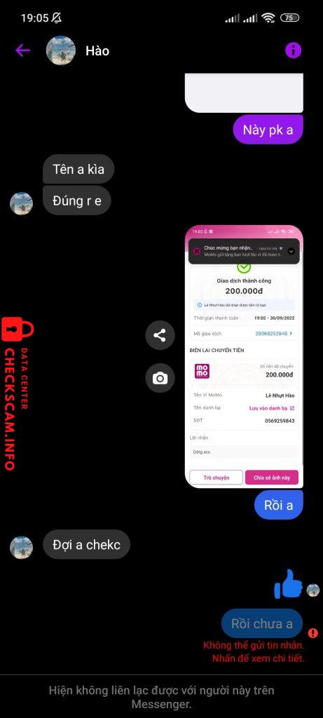 Scammer Alert: Lê Nhựt Hào Reported: November 16, 2024 Scammer Information Full Name: Lê Nhựt Hào Payment Gate: Lỉenvietpostbank Payment Account: 0569259843 Category: Marketplace scams Source: Checkscam Evidence Files Report Description 2 thằng này cấu kết Scam Comments Your comment Add Comment No comments yet. Be the first to share your experience with this scammer.