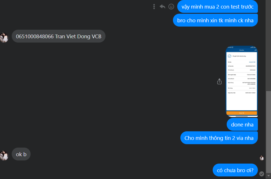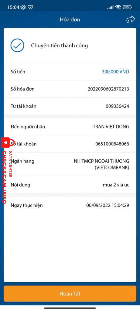 Scammer Alert: Tran Viet Dong Reported: November 16, 2024 Scammer Information Full Name: Tran Viet Dong Payment Gate: Vietcombank Payment Account: 0651000848066 Category: Marketplace scams Source: Checkscam Evidence Files Report Description Lừa mua bán VIA ( Tài khoản có xác minh trên Facebook), ăn tạp không chừa một ai từ lừa 30k – 350k. Comments Your comment Add Comment No comments yet. Be the first to share your experience with this scammer.