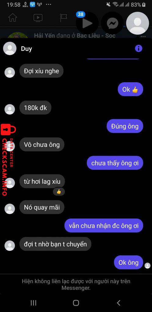 Scammer Alert: Võ Thái Duy Reported: November 16, 2024 Scammer Information Full Name: Võ Thái Duy Phone Number: 0773427346 Payment Gate: 0773427346 Payment Account: 0773427346 Category: Marketplace scams Source: Checkscam Evidence Files Report Description Lừa đảo 180k làm dịch vụ Tik Tok Hôm qua dùng tk fb dạng số nay đã đổi thành tên, số điện thoại gọi đã block, fb cũng đã chặn Comments Your comment Add Comment No comments yet. Be the first to share your experience with this scammer.