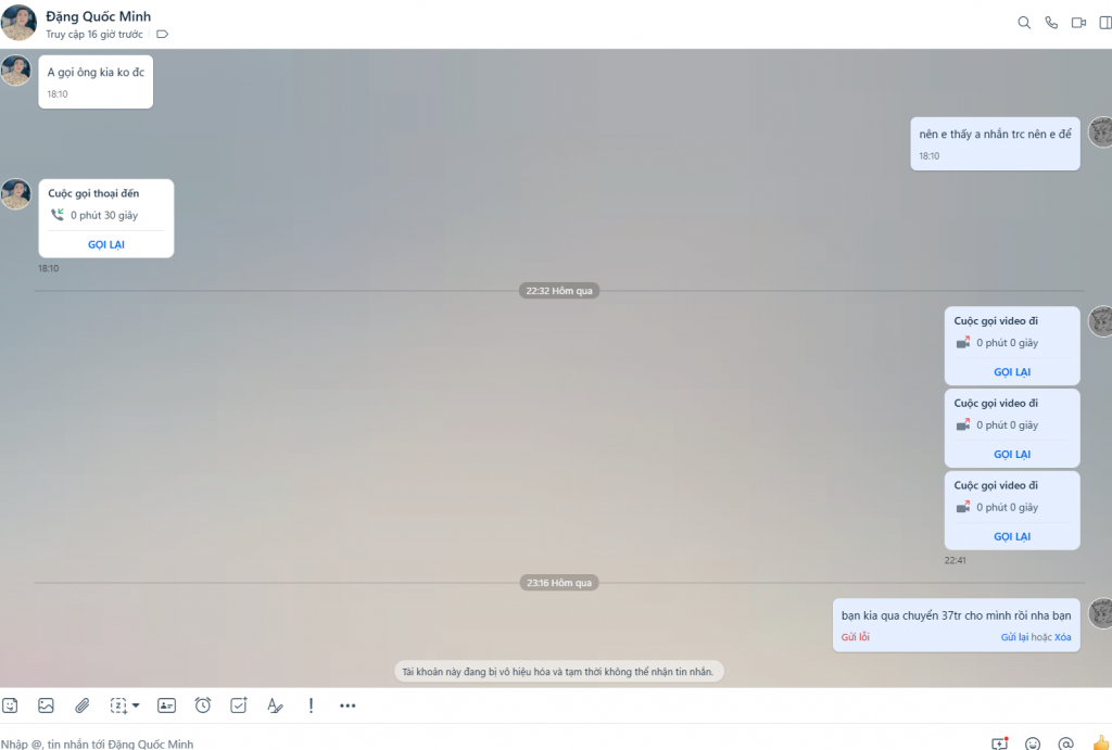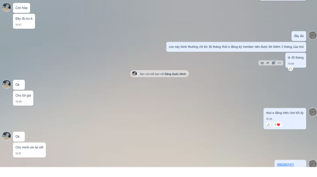 mình và ông anh bán card màn hình Rtx 3090ti Thằng Này cố tình lừa đảo khi mình có gọi call bình thường thì nó bắt máy còn gọi video thì nó tắt liệm đi nó lừa đảo bằng cách bán cho 1 ông nào đó bằng hình ảnh và cái card giá rẻ hơn rất nhiều ( Vd mình bán 37tr nó đi bán cho mấy ông thợ 20tr như vậy ) lúc đó mình có hối nó kêu qua sớm vì mình bận còn đi làm rồi nó có nhờ ông thợ ( Mà mình buôn bán với nhau nên biết ông thợ này ) ông ta tới rồi kêu mua với giá 20tr rồi định chuyển tiền qua cho thằng kia 20tr sau khi tới nhà ( mình phát giác được nên thôi kêu gọi video nó xem mặt nó liền lấy lí do này nọ không xem xong nó chặn cả 2 người ) lúc đó mình tá hỏa với ông thợ vì biết là nó là lừa đảo 1 cách tinh vi như vậy vừa mất thời gian vừa tốn công chạy lại.