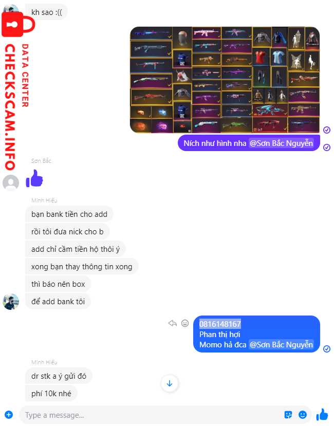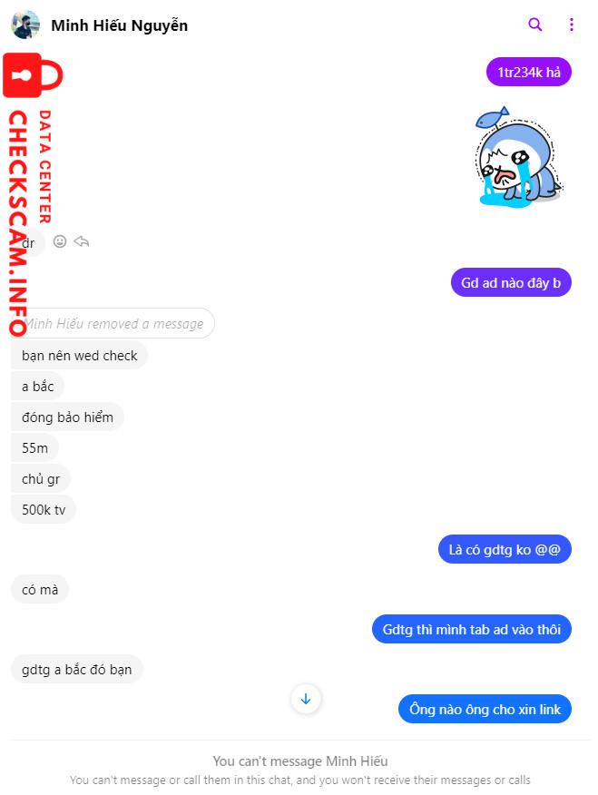 Scammer Alert: 0816148167 Reported: November 16, 2024 Scammer Information Full Name: 0816148167 Phone Number: 0816148167 Payment Gate: momo Payment Account: 0816148167 Category: Marketplace scams Source: Checkscam Evidence Files Report Description Báo ad là 500k TV bảo hiểm 50tr ở checkscam nhưng là checkscam247.info. Comments Your comment Add Comment No comments yet. Be the first to share your experience with this scammer.