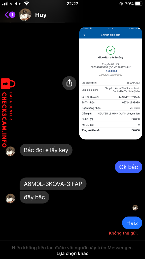 Scammer Alert: Đỗ Võ Nhật Huy Reported: November 16, 2024 Scammer Information Full Name: Đỗ Võ Nhật Huy Payment Gate: Mb bank Payment Account: 087141899999 Category: Marketplace scams Source: Checkscam Evidence Files Report Description Scam, chuyển tiền rồi đưa code đã sử dụng xong chặn Comments Your comment Add Comment No comments yet. Be the first to share your experience with this scammer.