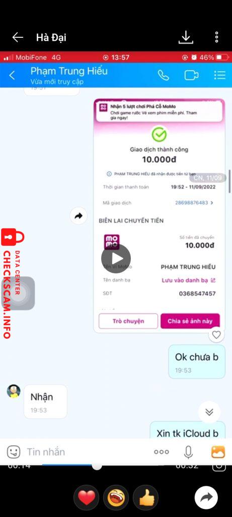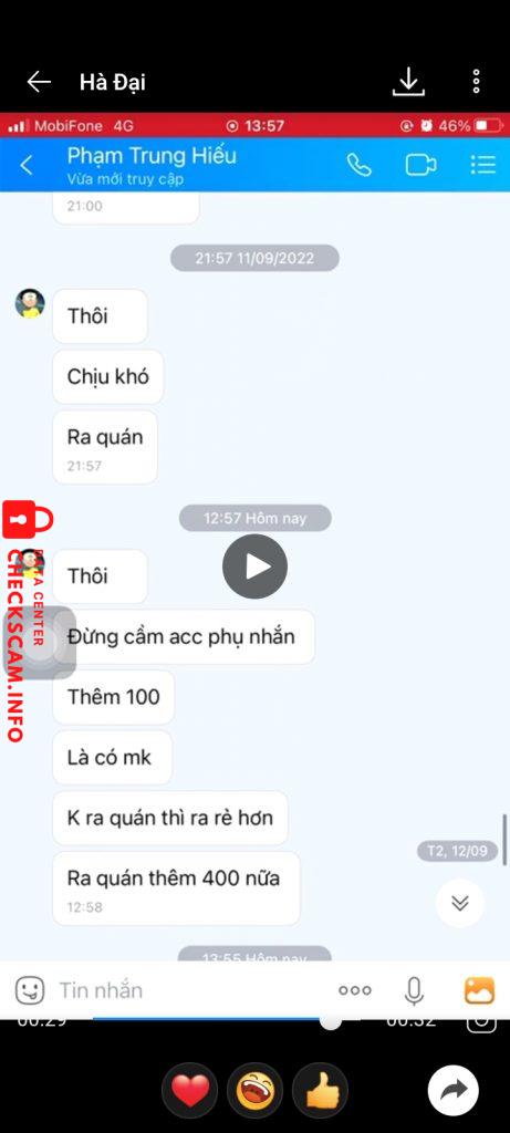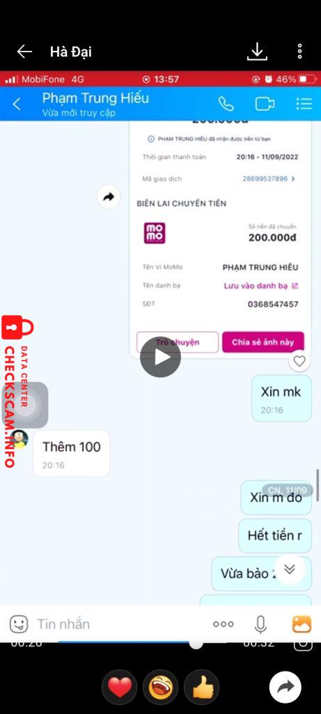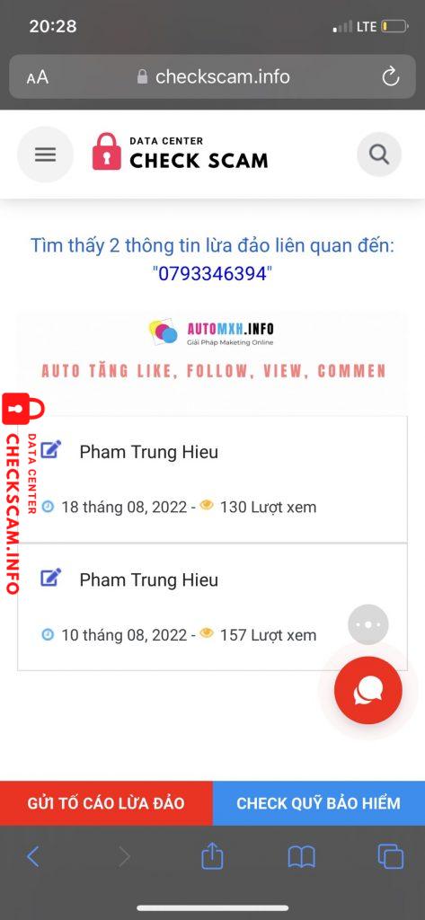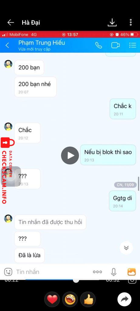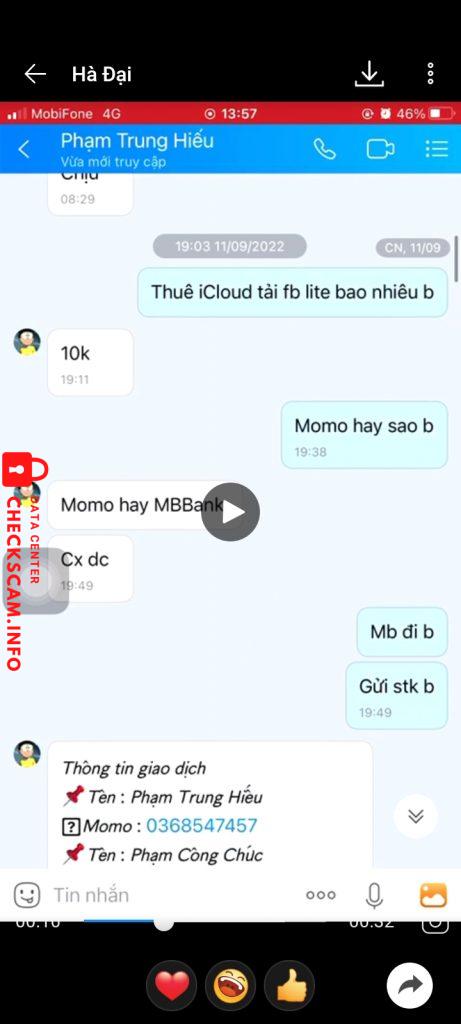 Scammer Alert: Phạm Trung Hiếu Reported: November 16, 2024 Scammer Information Full Name: Phạm Trung Hiếu Phone Number: 0898772822 Payment Gate: Momo Payment Account: 0898772822 Category: Marketplace scams Source: Checkscam Evidence Files Report Description Phạm Trung Hiếu Nơi Ở Thiện Phiến Tiên Lữ Hưng Yên Comments Your comment Add Comment No comments yet. Be the first to share your experience with this scammer.