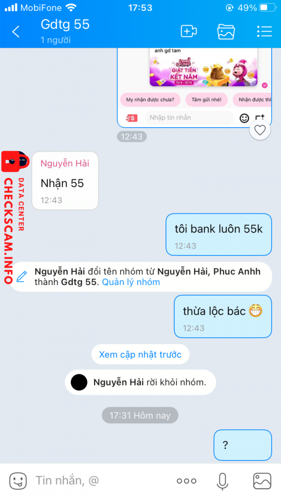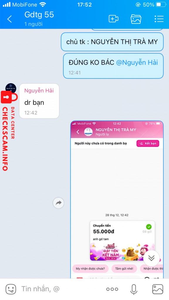 Scammer Alert: 0903038477 Reported: November 16, 2024 Scammer Information Full Name: 0903038477 Phone Number: 0939946847 Payment Gate: Momo Payment Account: 0903038477 Category: Marketplace scams Source: Checkscam Evidence Files Report Description 0939946847. Tên zalo : Văn Tâm 0903038477 . Tên zalo : Phuc Anhh Comments Your comment Add Comment No comments yet. Be the first to share your experience with this scammer.