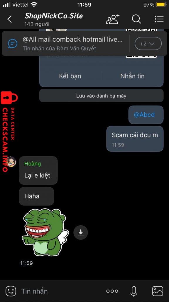 Scammer Alert: PHẠM TUẤN KIỆT Reported: November 16, 2024 Scammer Information Full Name: PHẠM TUẤN KIỆT Phone Number: 0921778077 Payment Gate: MoMo Payment Account: 0921778077 Category: Marketplace scams Source: Checkscam Evidence Files Report Description Scam Lừa Đảo Nhiều Người Comments Your comment Add Comment No comments yet. Be the first to share your experience with this scammer.