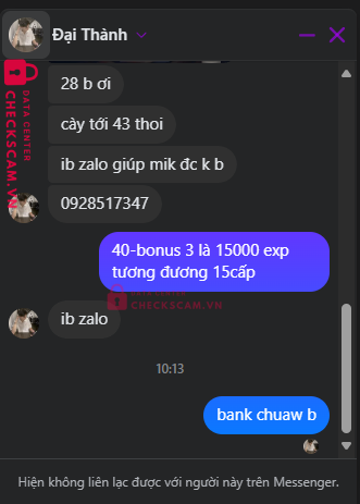 Scammer Alert: 0928517347 Reported: March 7, 2025 Scammer Information Full Name: 0928517347 Payment Gate: sdt zalo Payment Account: 0928517347 Category: Marketplace scams Source: Checkscam Evidence Files Report Description THUÊ CÀY GAME RỒI SCAM Comments Your comment Add Comment No comments yet. Be the first to share your experience with this scammer.