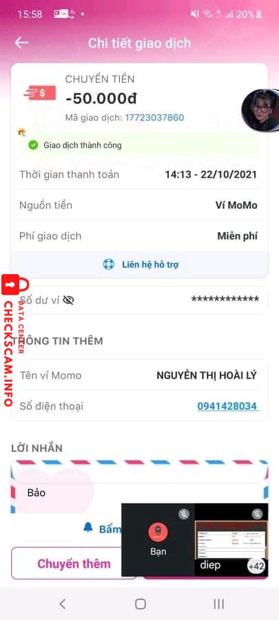 Scammer Alert: 0941428034 Reported: November 16, 2024 Scammer Information Full Name: 0941428034 Phone Number: 0941428034 Payment Gate: 2503102345 Payment Account: 0941428034 Category: Marketplace scams Source: Checkscam Evidence Files Report Description Scam 300k còn nữa Comments Your comment Add Comment No comments yet. Be the first to share your experience with this scammer.