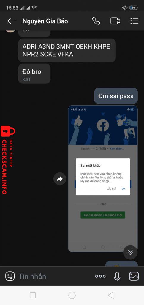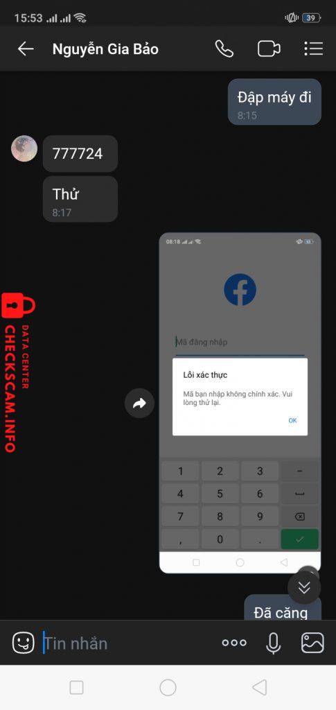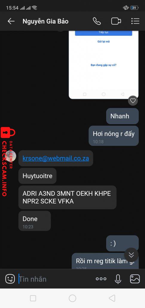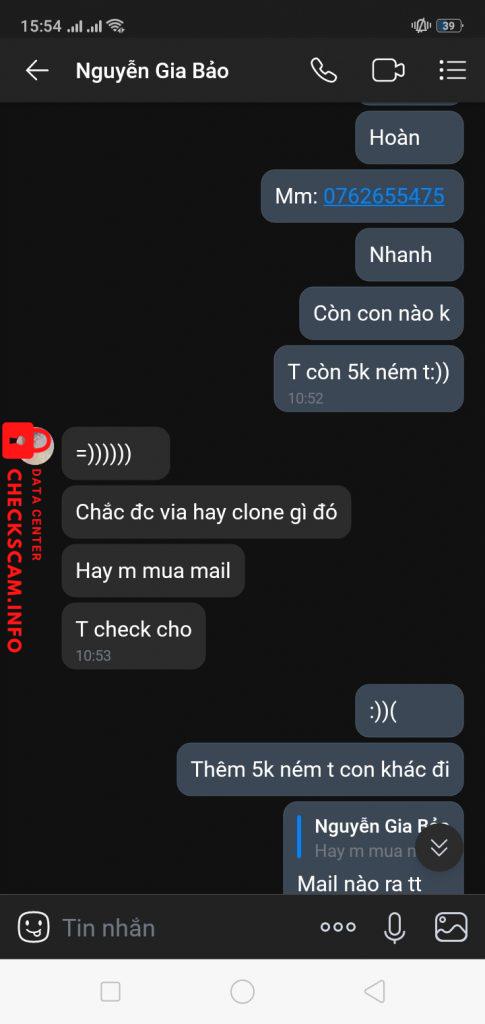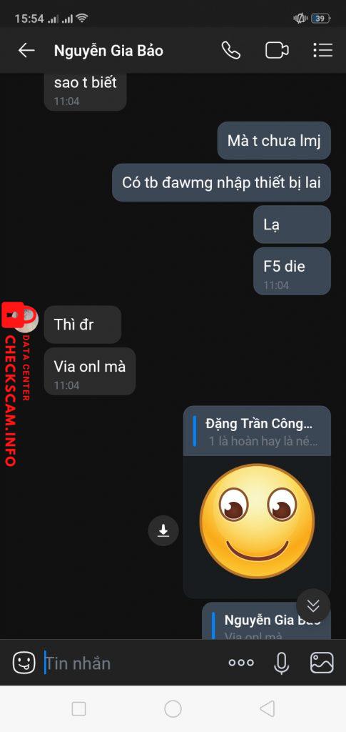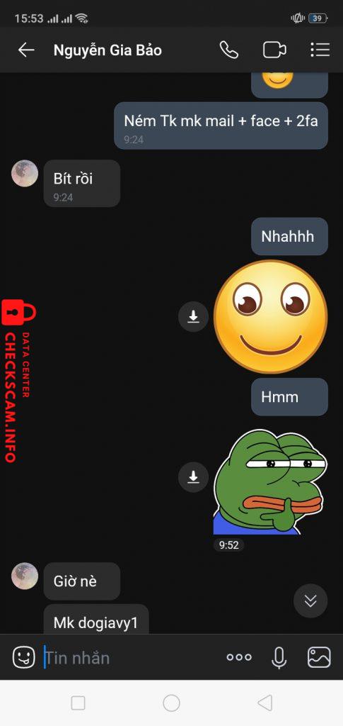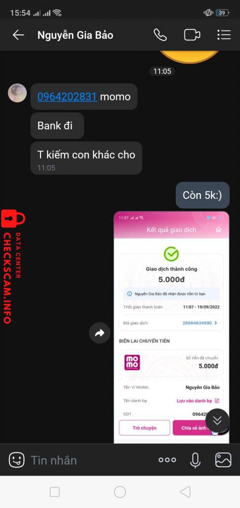 Scammer Alert: Nguyễn Gia Bảo Reported: November 16, 2024 Scammer Information Full Name: Nguyễn Gia Bảo Phone Number: 0964202831 Payment Gate: Momo Payment Account: 0964202831 Category: Marketplace scams Source: Checkscam Evidence Files Report Description Comments Your comment Add Comment No comments yet. Be the first to share your experience with this scammer.