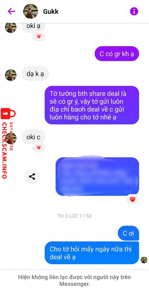 Con này chuyên share deal ảo nhé ạ, thấy ? rẻ thì đừng ham như mình mà hãy check thật kĩ lại trước khi giao dịch. Scam rất nghệ luôn có cả bài check lg, nó đã đổi avatar và đổi tên thành Gukk Tae rồi, mn xem mà tránh nha.