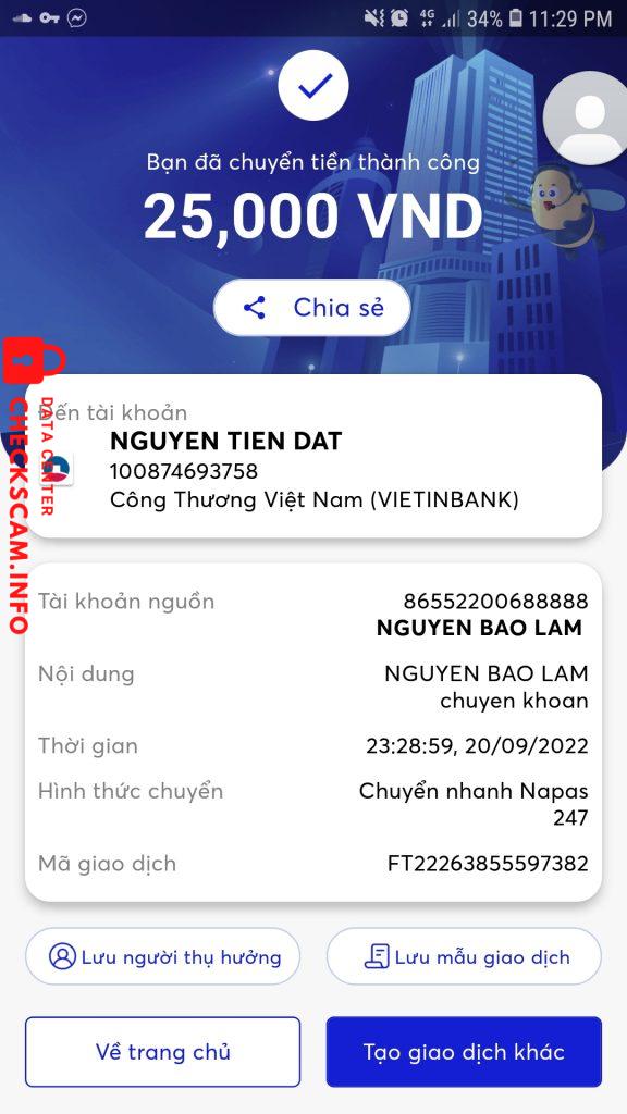 Scammer Alert: NGUYEN TIEN DAT Reported: November 16, 2024 Scammer Information Full Name: NGUYEN TIEN DAT Payment Gate: VIETINBANK Payment Account: 100874693758 Category: Marketplace scams Source: Checkscam Evidence Files Report Description Mua acc nro và bị scam. Comments Your comment Add Comment No comments yet. Be the first to share your experience with this scammer.